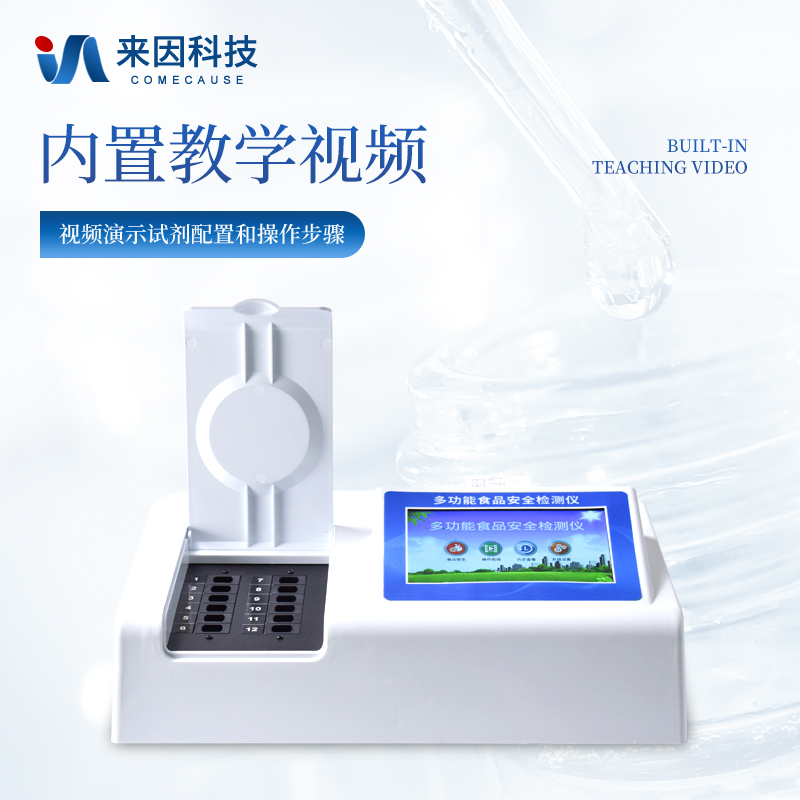 可快速检测各类食品中的甲醛、二氧化硫、亚硝酸盐、吊白块的含量,仪器预留其他项目检测程序和端口,根据日后需求可方便的自主增加检测项目。
